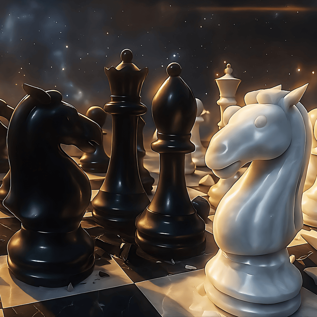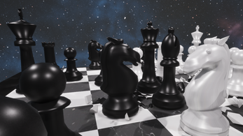 Stylized Environment – The chessboard floats in a vast cosmic background, enhancing the epic and surreal tone of the match.